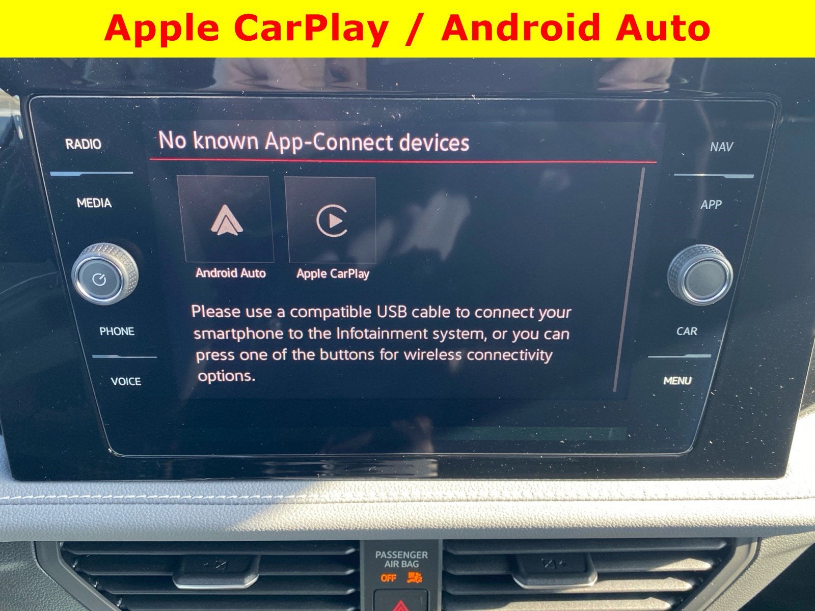 - Radio: MIB3 Discover Media w/8" Touchscreen Nav -inc: AM/FM/HD Radio and WMA/MP3/FLAC player w/USB-C, voice control, Bluetooth® connectivity (for compatible devices), SiriusXM w/360L (w/3-month trial subscription; 360L services require acceptance of Car-Net terms), capability for in-vehicle 4G LTE enabled Wi-Fi (cellular data plan required; includes limited trial), capability for connected vehicle services (capabilities for certain services vary; requires enrollment or subscription), App-Connect smartphone integration (w/Apple CarPlay, Android Auto and MirrorLink) via USB, wireless App-Connect smartphone integration (for compatible devices) w/multi-phone pairing capability, USB-C enhanced charging, up to 45W (for compatible devices) and Qi wireless inductive charger (for compatible mobile phones and accessories) All connected vehicle services are subject to terms andlimitations. Some services require a paid subscription. See dealer or vw.com/connected for important details.
