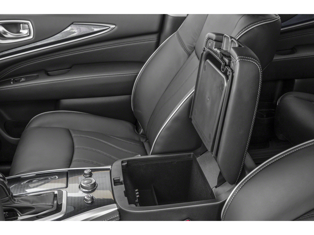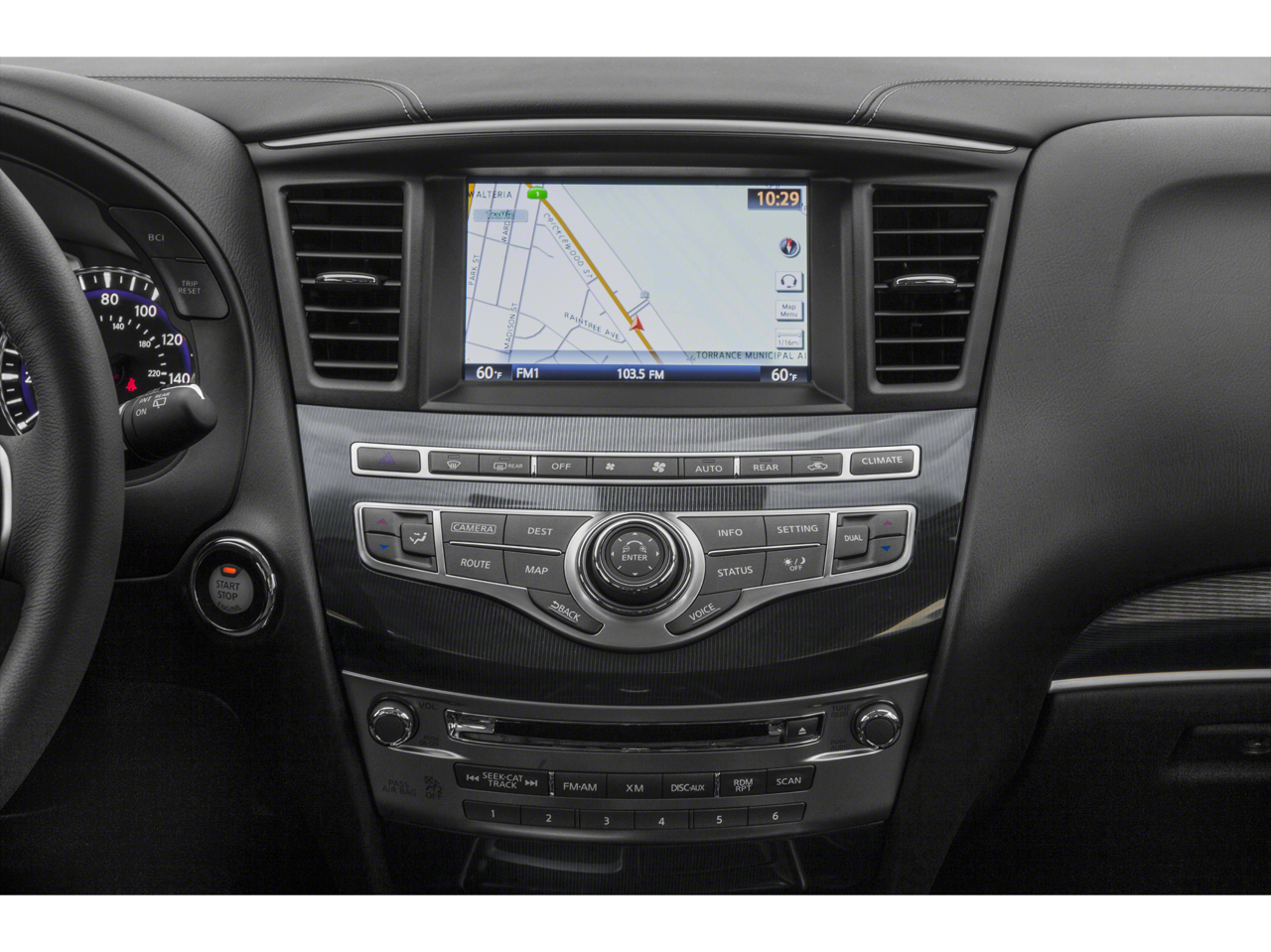 - Radio: AM/FM/CD/DVD w/Bose Premium Audio System -inc: 13 speakers, MP3 playback capability, Radio Data System (RDS), speed-sensitive volume control, INFINITI controller, auxiliary audio/video input jacks in front center console, 3 USB charging ports: rear console-mounted (1x) and 3rd row (2x), INFINITI InTouch w/8" WVGA color touch-screen vehicle information display, Bluetooth® hands-free phone system, hands-free text messaging assistant, streaming audio via Bluetooth® wireless technology, INFINITI voice recognition for audio, Bluetooth® and vehicle information including music search by voice, 2 USB ports for iPod and compatible devices, HD Radio, SiriusXM satellite radio w/3-month complimentary trial and SiriusXM Travel Link w/4 year complimentary trial access to weather, fuel prices, stock prices, sports scores and movie times