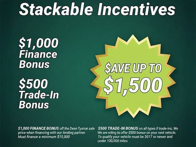 $1,000 FINANCE BONUS off the Dean Team Hyundai sales price when financing with our lending partner. Must finance a minimum of $15,000.
